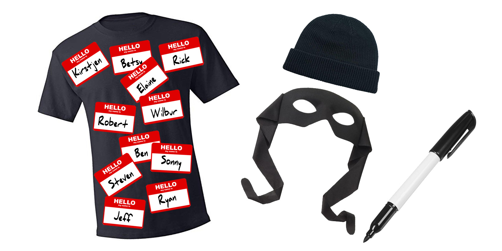 With cyber hacks and data breaches making headlines every other day, this costume couldn't be more timely or easier to put together. Just dress like yourself and throw on some name tags. Use the names of your coworkers for a more personal touch.